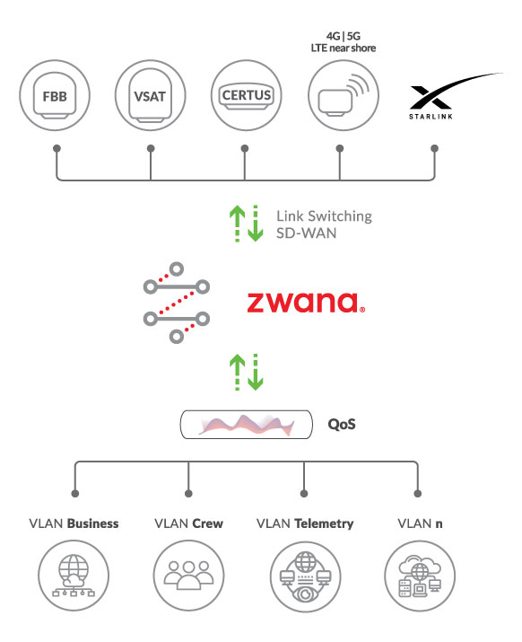 The Zwana family is a modular suite of satellite communications management solutions, combining powerful hardware and an advanced WatchGuard SD -WAN firewall-router to optimize vessel connectivity.